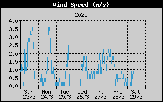 | Najveća brzina vjetra: | 9.8 m/s 5:50 |