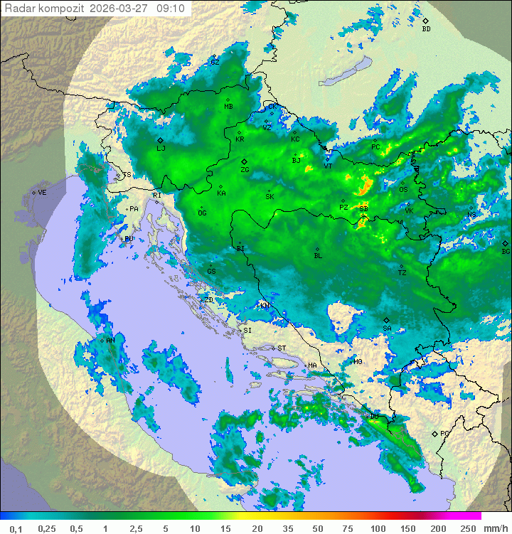 | Temp. danas °C: | 07:00 7.4 | min 4.5 | max 7.7 | razlika 3.2 | prosjek 6.3 |