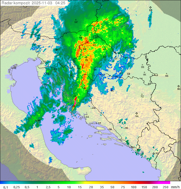 Prikazana je računalna (automatska) prognoza vremena temeljena na ECMWF prognostičkom modelu.