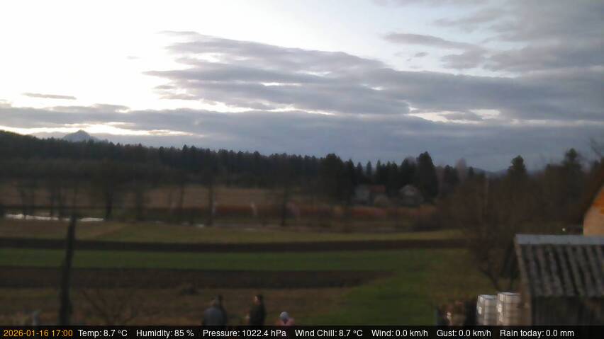 | Temp. danas °C: | 19:00 7.4 | min 6.6 | max 11.8 | razlika 5.2 | prosjek 8.7 |